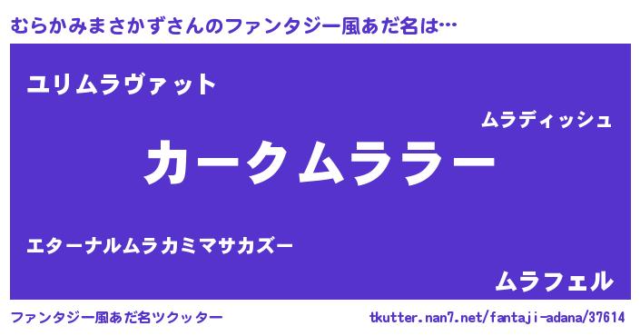 | 男性向けラノベタイトル風あだ名 | 『冴えないむらかみまさかずの育てかた』 |