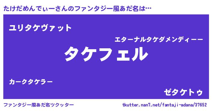 | 男性向けラノベタイトル風あだ名 | 『たけだめんでぃーの憂鬱』 |