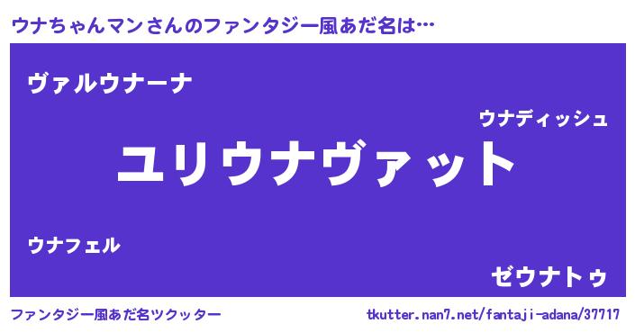 | 女子向けラノベタイトル風あだ名 | 『ウナちゃんマンの玉の輿計画!』 |