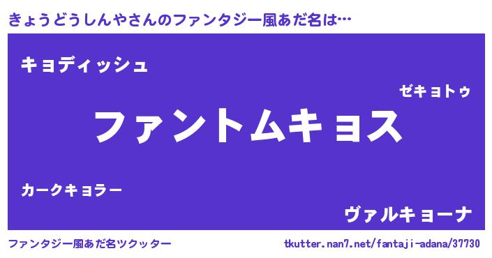 | ヒーロー風カッコイイあだ名 | 『幻影騎士キョ』『ネオキョウドウシンヤ』 |