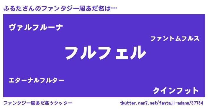 | 男性向けラノベタイトル風あだ名 | 『フルタアートオンライン』 |