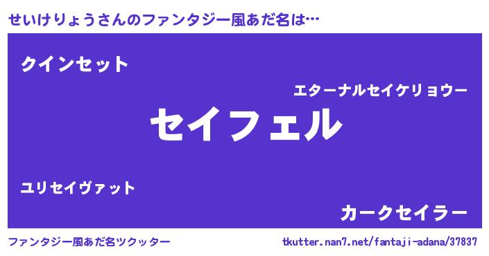| 自動車の名前っぽいあだ名 | 『セイティマ』『センR』『フェセーイ』 |