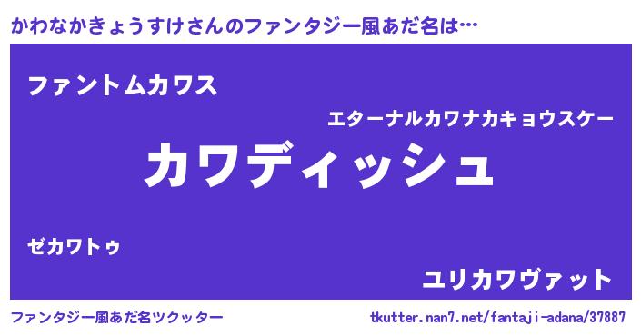 | 男性向けラノベタイトル風あだ名 | 『かわなかきょうすけという概念が存在しない退屈な世界 』 |