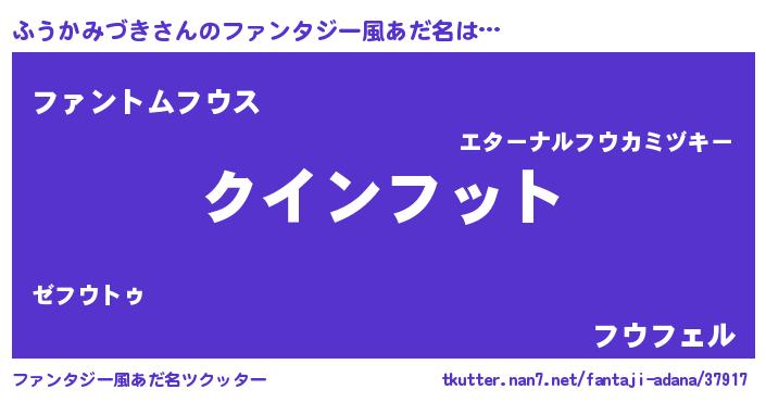 | 男性向けラノベタイトル風あだ名 | 『ふうかみづきに滅ぼされるだけの簡単なお仕事です』 |