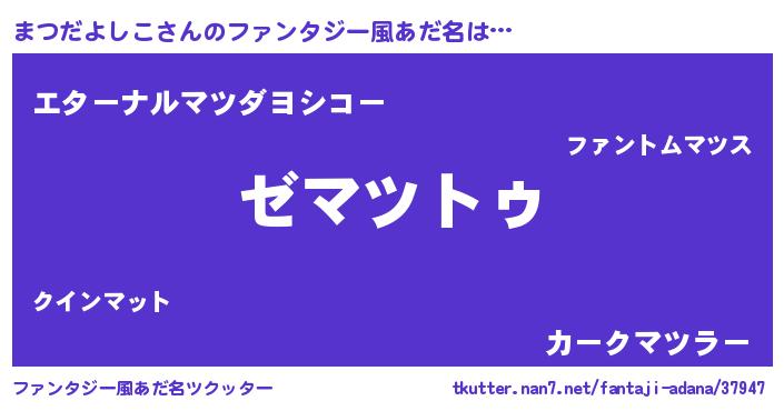 | ヒーロー風カッコイイあだ名 | 『究極戦士マツダヨシコ』『幻影騎士マツ』 |