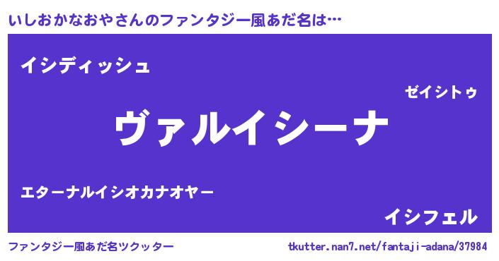 | 男性向けラノベタイトル風あだ名 | 『魔弾の王といしおかなおや』 |