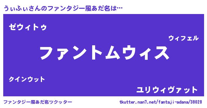 | 男性向けラノベタイトル風あだ名 | 『うぃふぃの嫁は女の子じゃないと思った?』 |