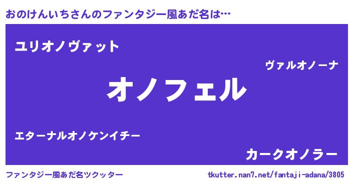 | 男性向けラノベタイトル風あだ名 | 『オノケンイチアートオンライン』 |