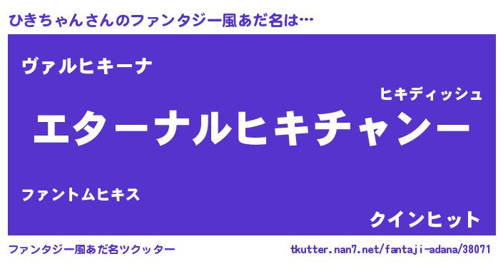 | 意味不明あだ名 | 『ひきちゃんフォーエバー』 |