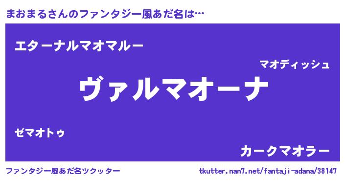 | 男性向けラノベタイトル風あだ名 | 『魔弾の王とまおまる』 |