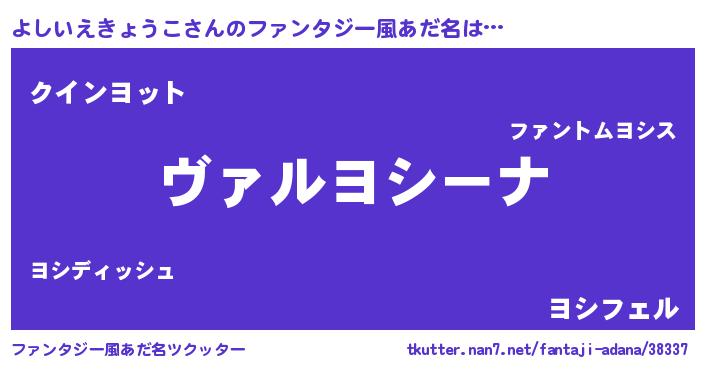 | 男性向けラノベタイトル風あだ名 | 『この素晴らしい世界によしいえきょうこを!』 |