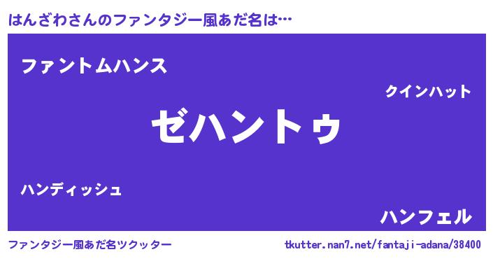 | ヒーロー風カッコイイあだ名 | 『最強戦士ハンザワ』『幻影騎士ハン』 |