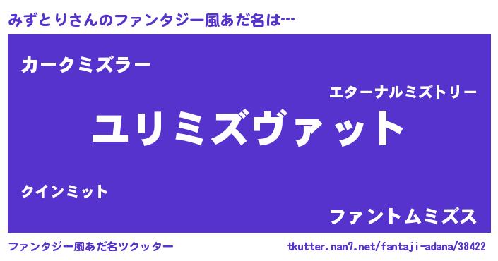 | ヒーロー風カッコイイあだ名 | 『黄金騎士ミズ』『ウルトラみずとりマン』 |