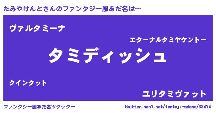 | 男性向けラノベタイトル風あだ名 | 『たみやけんとに滅ぼされるだけの簡単なお仕事です』 |