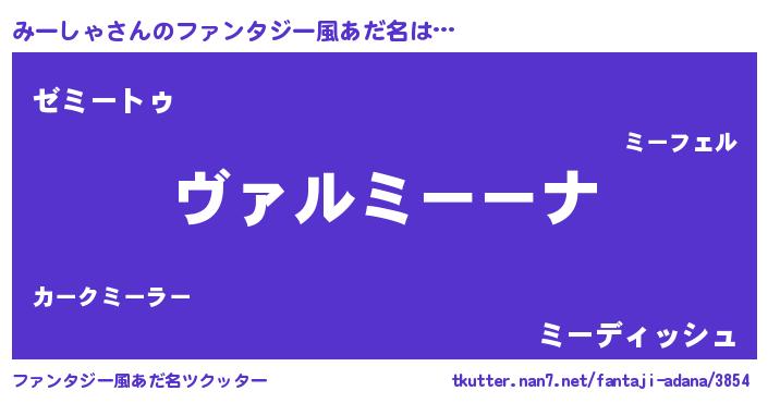 | 男性向けラノベタイトル風あだ名 | 『魔弾の王とみーしゃ』『みーしゃの憂鬱』 |