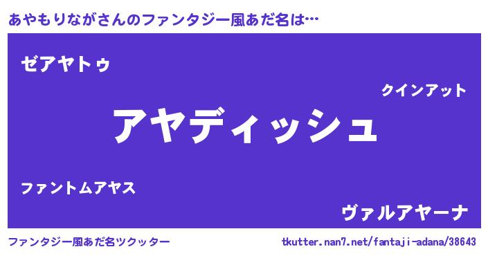 | ヒーロー風カッコイイあだ名 | 『ネオアヤモリナガ』『仮面アヤダー』 |