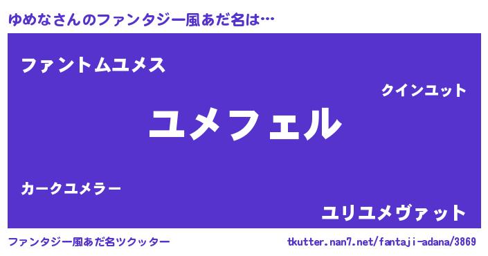 | 料理風あだ名 | 『栗とゆめなのマフィン』『ゆめなごはん』 |