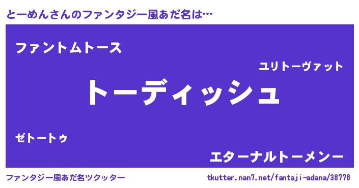 | 意味不明あだ名 | 『永久保存とーめん』『自称とーめん』 |