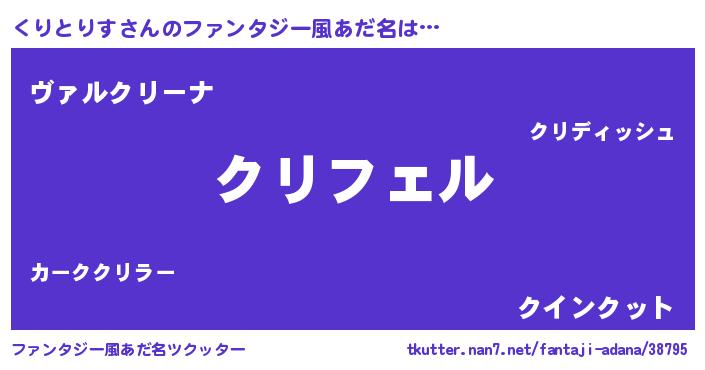 | ヘコむあだ名 | 『くりもー』『くりとりす(震え声)』 |