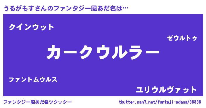 | ヒーロー風カッコイイあだ名 | 『慈愛の使者うるがもす』『幻影騎士ウル』 |