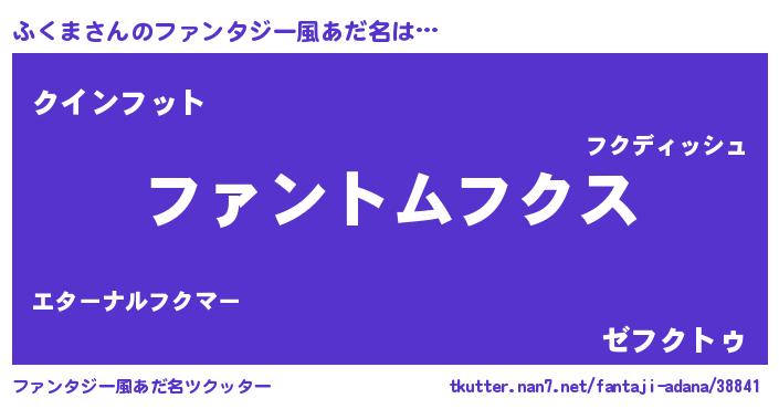 | 意味不明あだ名 | 『とにかく怪しいふくま』『自称ふくま』 |