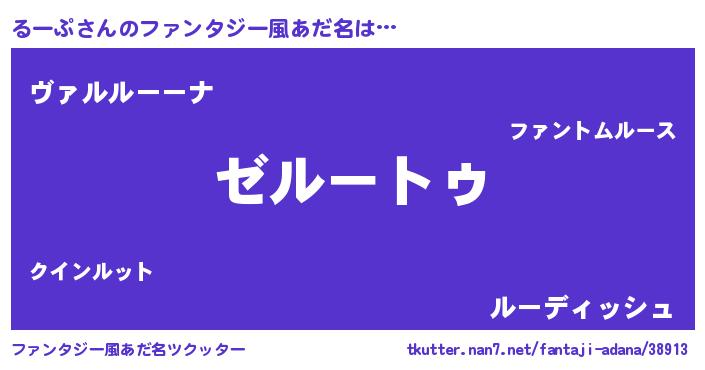 | 女子向けラノベタイトル風あだ名 | 『るーぷなんてお断りですっ。』 |
