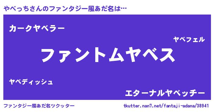 | ヒーロー風カッコイイあだ名 | 『暗黒騎士ヤベ』『ウルトラやべっちマン』 |