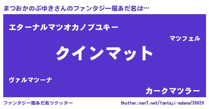 | 男性向けラノベタイトル風あだ名 | 『ノーゲーム・ノーマツオカノブユキ』 |