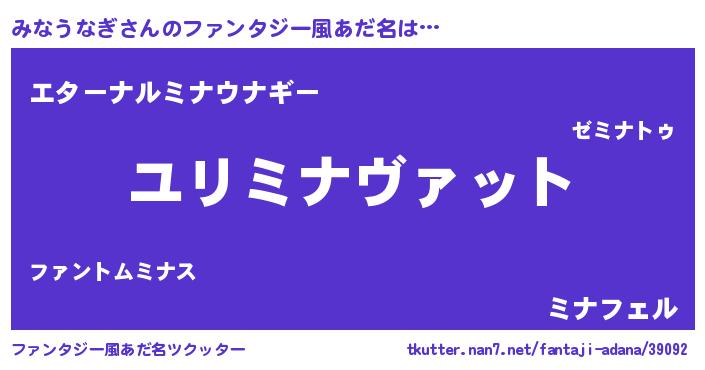 | 男性向けラノベタイトル風あだ名 | 『ミナウナギスレイヤー』 |