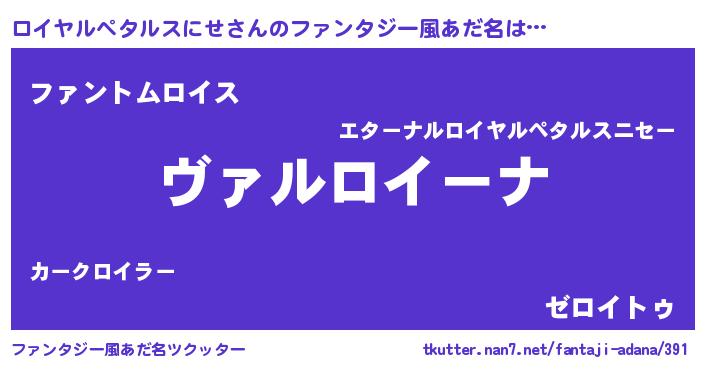 | 意味不明あだ名 | 『住所不定無職ロイヤルペタルスにせ(98歳)』 |