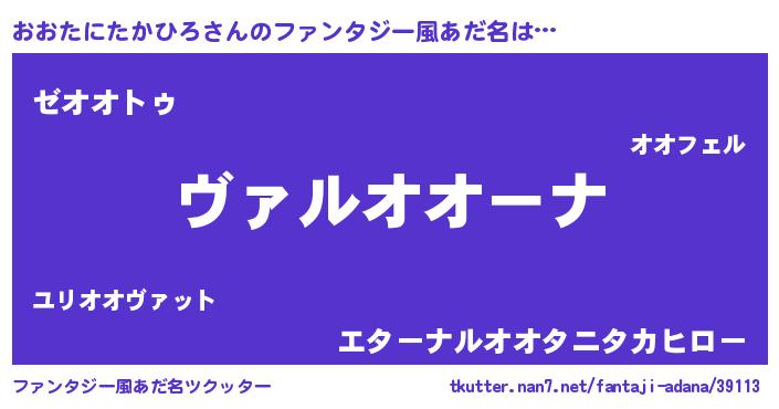 | 男性向けラノベタイトル風あだ名 | 『この素晴らしい世界におおたにたかひろを!』 |