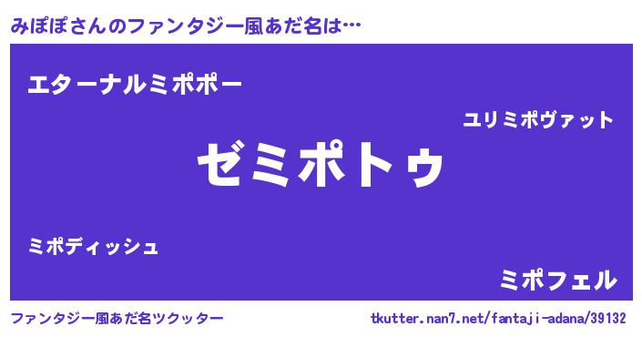 | 男性向けラノベタイトル風あだ名 | 『Re:みぽぽから始める異世界生活』 |