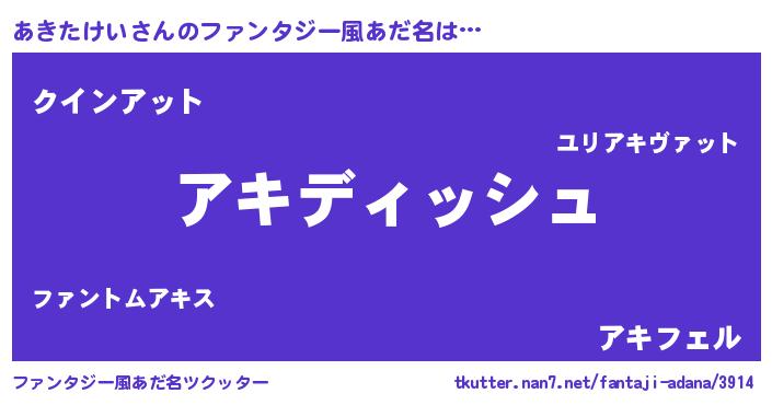 | 意味不明あだ名 | 『永久保存あきたけい』 |
