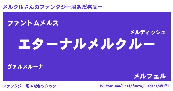 | ポケモン風あだ名 | 『メルクダネ』『メルゴンZ』 |