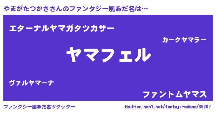| 男性向けラノベタイトル風あだ名 | 『ヤマガタツカサアートオンライン』 |
