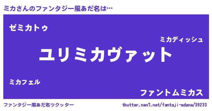 | ヘコむあだ名 | 『ミカを』『ミカ(遠い目)』 |