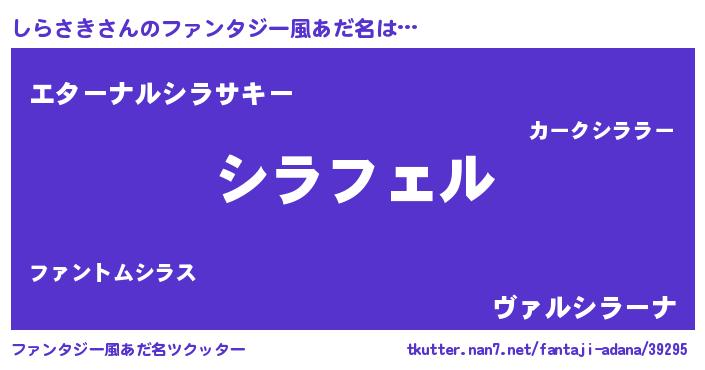 | 男性向けラノベタイトル風あだ名 | 『しらさきの憂鬱』『魔弾の王としらさき』 |