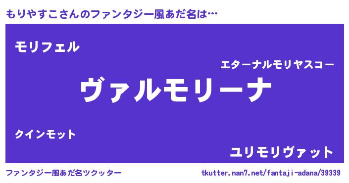 | 女子向けラノベタイトル風あだ名 | 『もりやすこが死なない童話 林檎のもりやすこの診療簿』 |