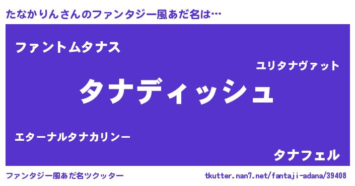 | ヒーロー風カッコイイあだ名 | 『ネオタナカリン』『炎刃騎士タナ』 |