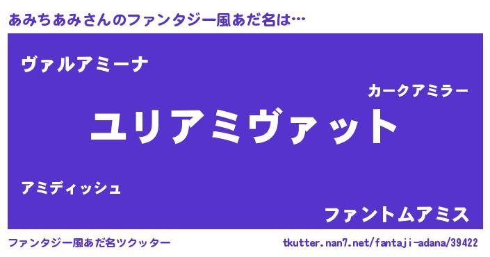 | 男性向けラノベタイトル風あだ名 | 『転生したらあみちあみだった件』 |