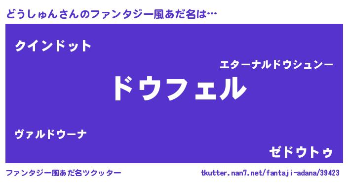 | 男性向けラノベタイトル風あだ名 | 『どうしゅんの憂鬱』 |