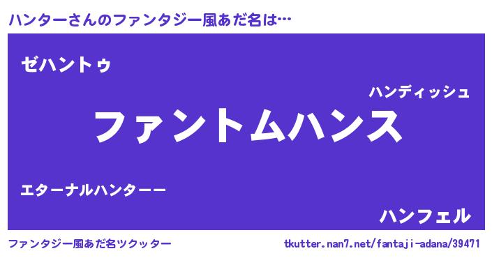 | ヒーロー風カッコイイあだ名 | 『幻影騎士ハン』『最強戦士ハンター』 |