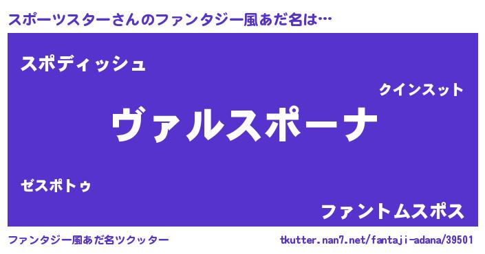 | 男性向けラノベタイトル風あだ名 | 『この素晴らしい世界にスポーツスターを!』 |