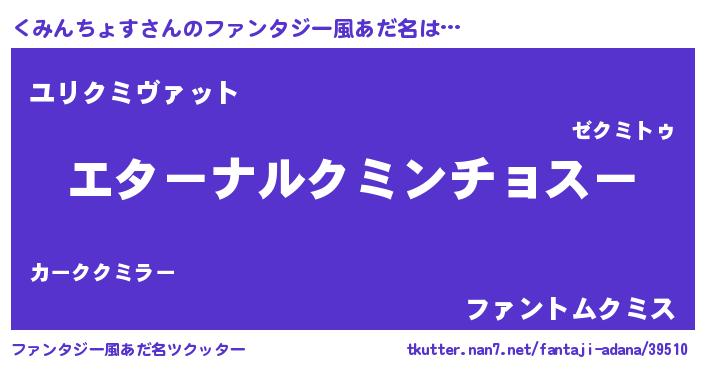 | 男性向けラノベタイトル風あだ名 | 『やはりくみんちょすの青春ラブコメはまちがっている 』 |