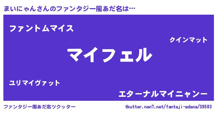 | ヒーロー風カッコイイあだ名 | 『スーパーマイニャン』『天弓騎士マイ』 |