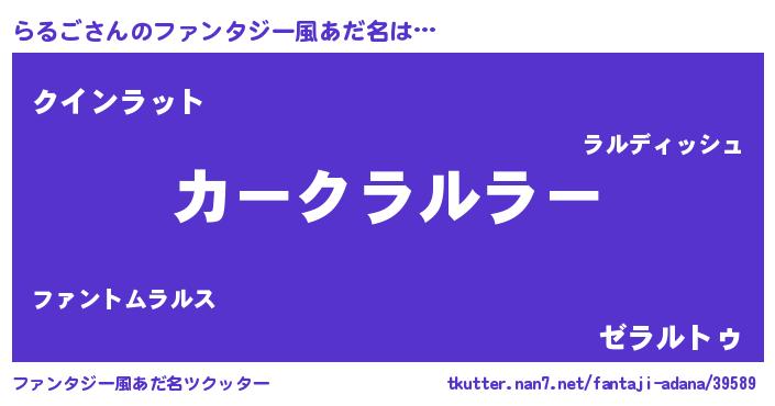 | ヒーロー風カッコイイあだ名 | 『友情の使者らるご』『究極戦士ラルゴ』 |