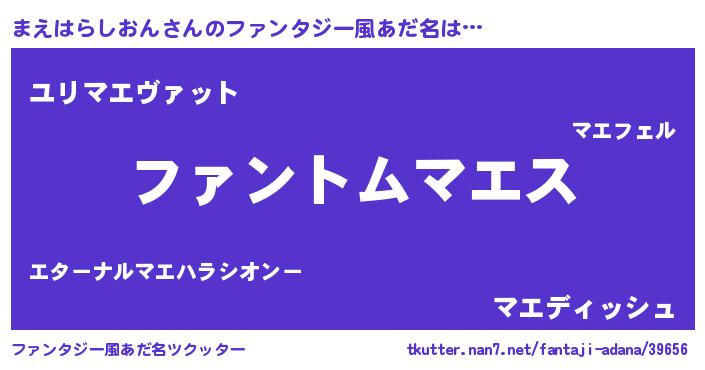 | 女子向けラノベタイトル風あだ名 | 『まえはらしおんの卵を拾いまして』 |