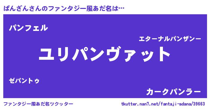 | 男性向けラノベタイトル風あだ名 | 『転生したらぱんざんだった件』 |