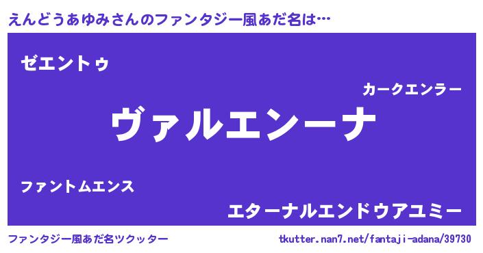 | 女子向けラノベタイトル風あだ名 | 『乙女ゲームの破滅フラグしかない悪役えんどうあゆみに転生してしまった…』 |