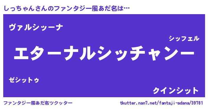 | 欧米人風あだ名 | 『しっちゃんクリステル』 |